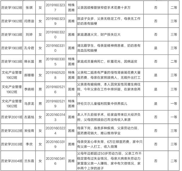 据学校通知“为确保我校家庭经济困难学生安心学习、正常生活,特开展2020年学生困难补助申请工作”,结合系部实际情况,通过各班班主任对申报困难补助学生的基本陈述以及和各位学生的真实情况,现将22名困难补助学生的等级公示如下:
