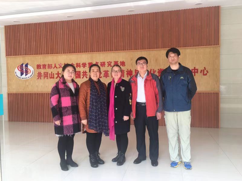 11月25日一行人首先访问了井冈山大学,随后考察了教育部人文社科重点基地--中国共产党革命精神与文化资源研究中心、以及资料室。