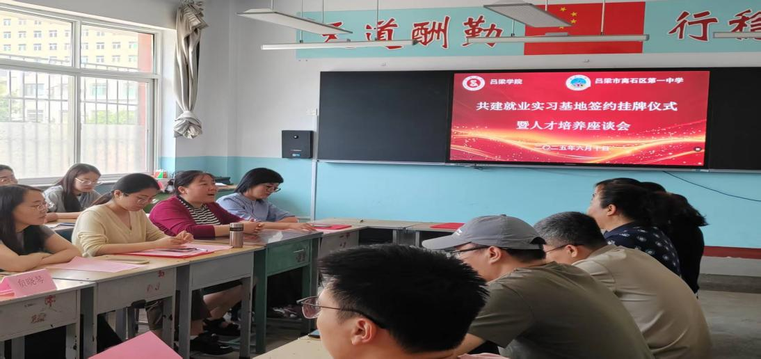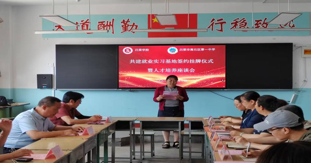 2025年6月10日上午,betway西汉姆联必威西汉姆联与吕梁市离石区第一中学共建就业实习基地签约挂牌仪式暨人才培养座谈会在离石一中会议室顺利举行。必威西汉姆联主任李婷婷、离石一中校长程宇锋及双方教师代表、实习生共同参与活动,会议由离石一中石艳霞老师主持。