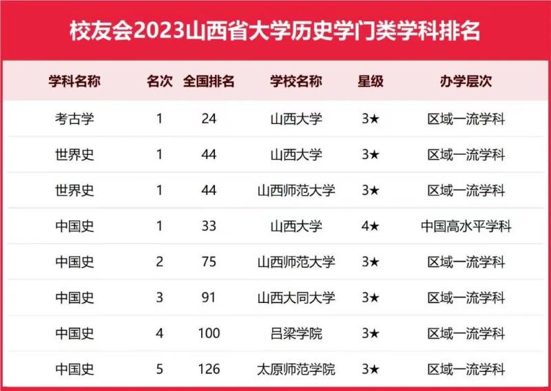 校友会中国大学排名首发于2003年,至今已有20年的历史,是目前中国参评高校数量最多和参评专业规模最大的中国大学本科专业排名,已成为具有广泛社会影响力、公信力、参考价值和创新力的中国大学排名领先品牌。2023年,艾瑞深校友会网正式发布山西省开设历史学专业的高校排名,榜单显示,必威西汉姆联中国史排名第四,喜获同级同类兄弟院校之冠,全国排名跻身第一百位。