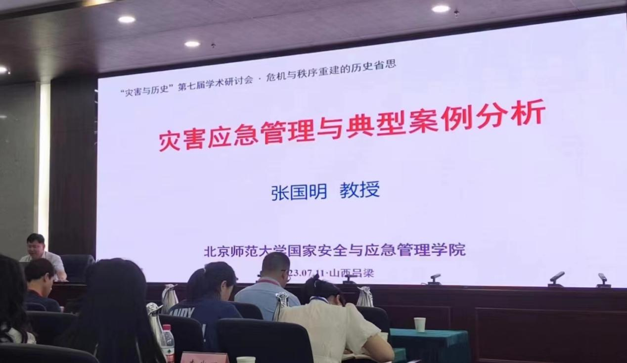 上午九时许,由北京师范大学国家安全与应急管理学院张国明教授进行首场专题讲座,讲授题目为《灾害应急管理与典型案例分析》(见图1),向晋卫教授担任本场讲座的主持人。张国明教授从“灾害应急管理概念的形成、历史渊源”,“当代国内外灾害现状”“应急管理体系建设结构”等角度,结合三大典型案例,介绍了应急管理建设对于灾害应对的重要性。
