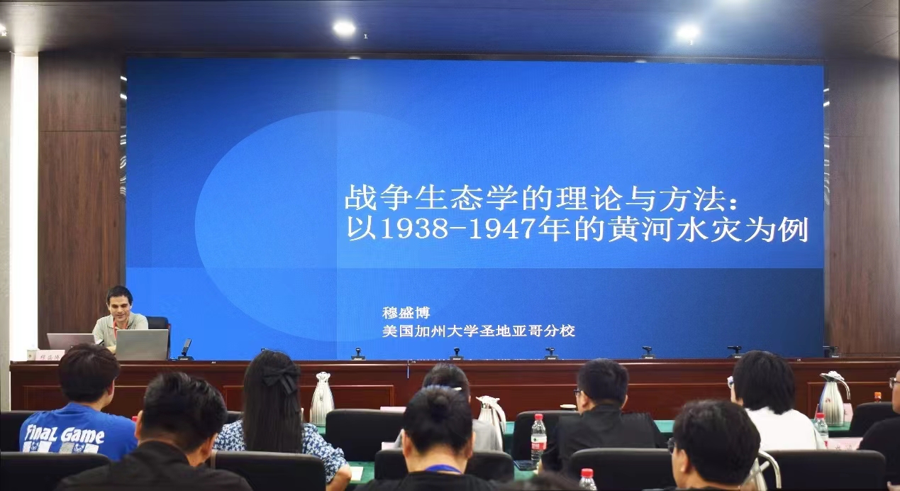 下午三点,由美国加州大学圣地亚哥分校教授穆盛博进行第四场专题讲座,讲座题目为《战争生态研究的理论与方法——以1938-1947年的黄河水灾为例》,中国人民大学清史研究所暨生态史研究中心夏明方教授担任主持人。