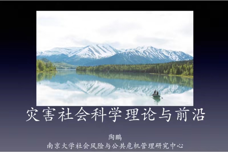 下午三点,南京大学政府管理学院研究员陶鹏教授进行了《灾害社会科学基础理论与前沿动态》为主题的专题讲座。陶教授首先介绍了关于灾害的多学科对话与研究,然后对灾害社会科学经典理论中的规范理论、经验性理论、风险社会理论等多种理论,最后梳理了灾害社会科学的前言理论议题和方法。