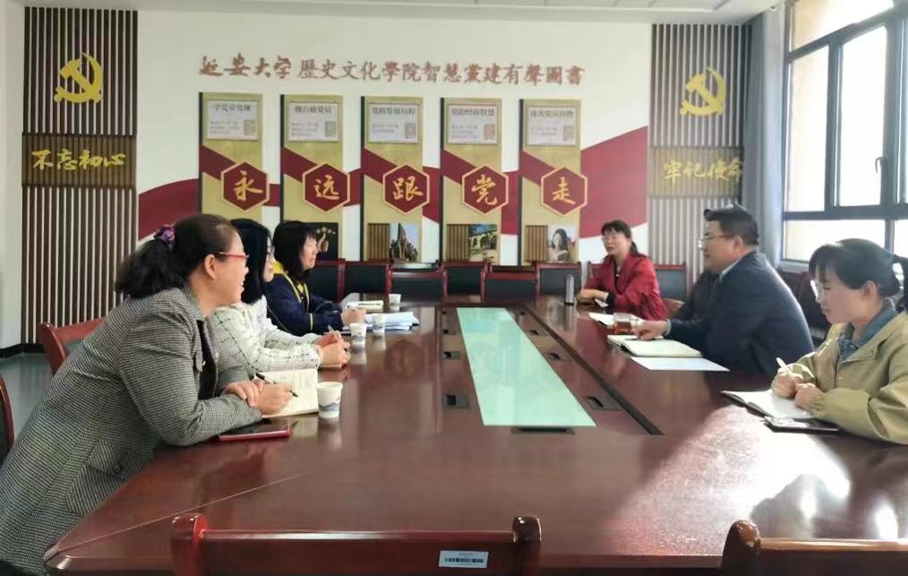 4月19日,在延安大学政法与公共管理学院会议室举行座谈会。学院副院长秦敏、常改香,中共党史系主任雷小倩等人出席座谈会。常改香教授介绍了《延安精神概论》一流课程的建设情况、创新特色。我系王彦老师介绍了《吕梁精神与红色文化》课程的开展情况,并向对方请教了课程体系的安排、课程活动设置、课程考核方式等问题。张发青副主任还向秦敏副院长咨询了审核评估相关经验和注意事项。