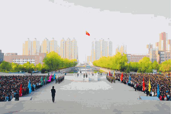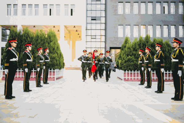 升旗仪式于6:30准时开始,而6:10参加此次升旗仪式的全体学生已经到场,静待五星红旗的升起。6:30整,国旗班的旗手们迎着朝阳,踏着矫健的步伐,以饱满的热情,庄严地护卫五星红旗进场。随后,校军乐队雄壮有力的《义勇军进行曲》响彻了整个校园,同学们集体行注目礼,全场弥漫着一种庄严肃穆的气息。鲜艳的五星红旗冉冉升起,激发了所有学生不断向上的斗志,点燃了同学们强烈的爱国热情。我们的内心不由深深涌起一种祖国的自豪,对先辈的缅怀,对五星红旗的敬重。