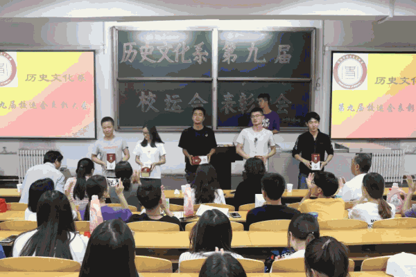 本次表彰大会旨在表扬运动员在田径场上顽强拼搏并且不服输的品质,鼓励运动员继续发扬体育精神、锻炼顽强的意志。在体育部部长王晨的主持下,大会正式开始。本次大会共分为五项。大会第一项,欣赏校运会上运动员优异表现的视频集锦。运动员们在运动场上挥洒汗水,以行动展现激扬青春活力。