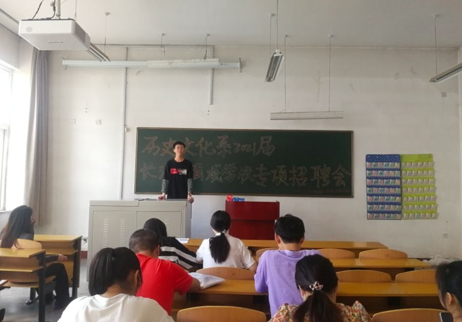 为更好地服务社会、增加大学生的就业机会,2021年5月26日下午14:30~15:30必威西汉姆联专项招聘会在三区102准时举行。参会人员有长治市潞州区育成学校教师和必威西汉姆联历史学17级有求职意向的90名学生。