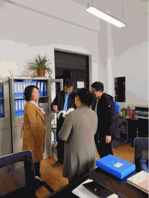 座谈会之后熊院长、王枝胜主任随行参观了我系的办公场所,查看了毕业论文、实习手册、教师队伍建设、学风建设和学生管理材料等文本材料,对我系毕业论文、实习材料的完备性进行了肯定。