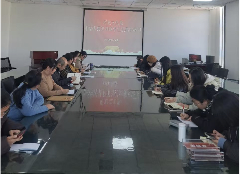 为贯彻落实国家教育政策,有效推进《中华人民共和国学位法》的学习宣传与实施工作,加深必威西汉姆联全体教师对学位制度的认知与学习,确保学位授予质量,必威西汉姆联于1月14日在系会议室618召开专题学习会议,本系党总支书记于进军、系主任李婷婷、副书记闫婕、副主任张发青,以及全体专任教师、辅导员共同参与。
