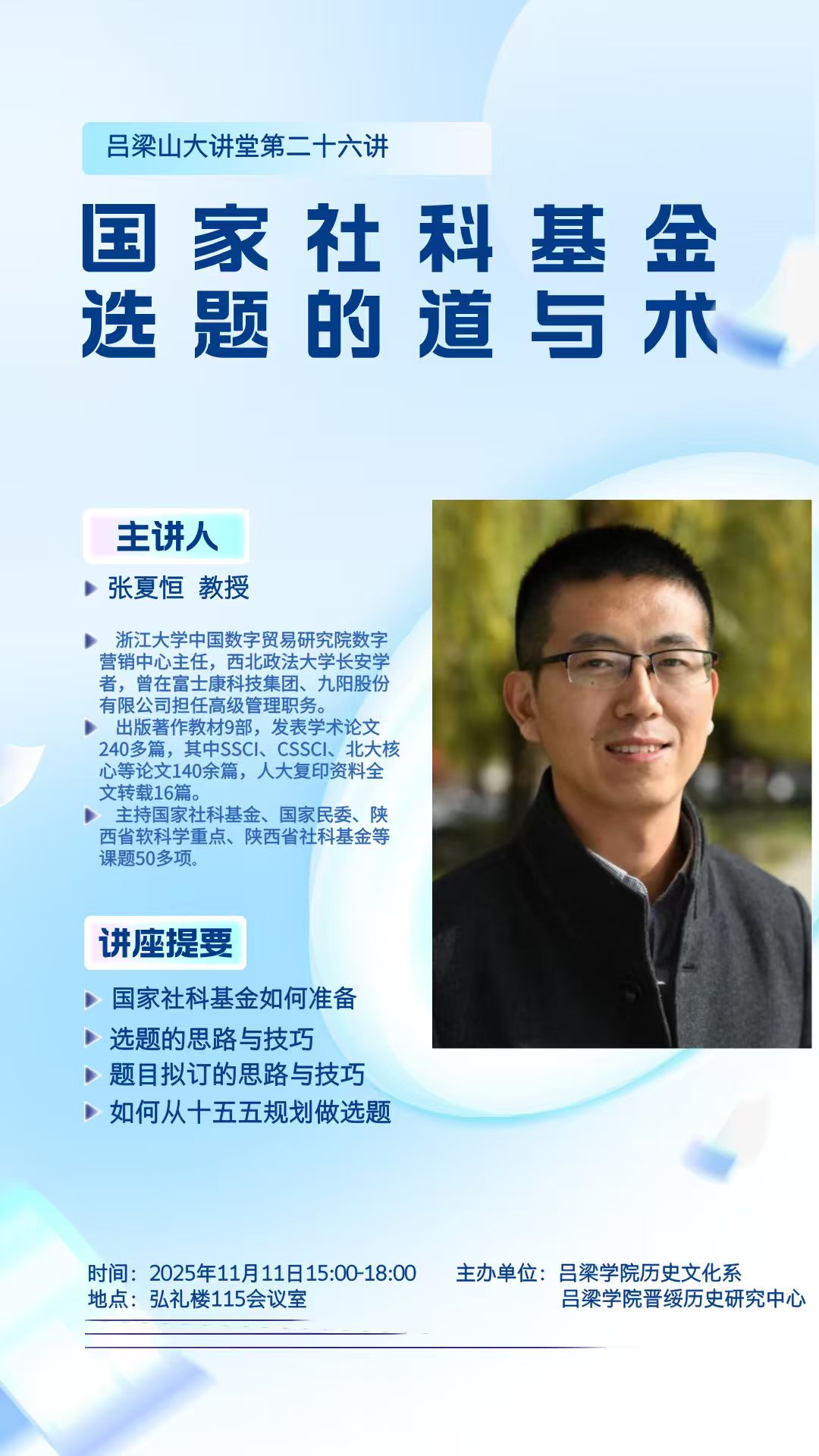 吕梁山大讲堂第二十六讲通知:国家社科基金选题的道与术